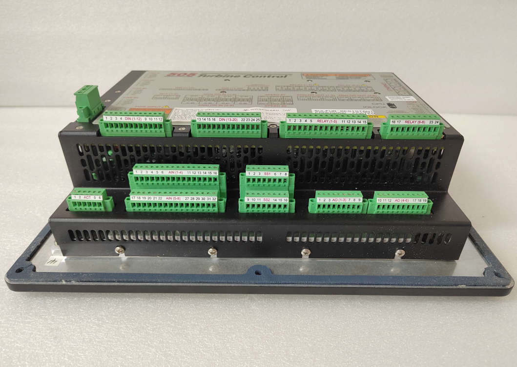 The unit includes two redundant speed inputs that accept magnetic pickup devices, eddy current probes, or proximity probes. It has eight analog inputs that can be configured for any of twenty-seven functions. The unit also has an additional twenty contact inputs. The first four of these contacts are used by default for shutdown, raise speed setpoint, reset, and lower speed setpoint.